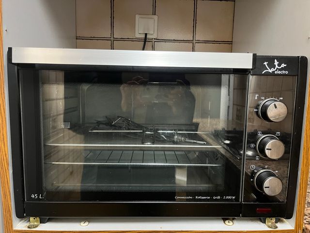 Detalles del productoHorno eléctrico de sobremesa Jata Electro con capacidad de 45 litros.