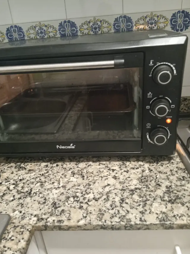 Horno eléctrico compacto, ideal para tu cocina. 35€ no negociables. Barcelona - Telf +34 662 68 43 11 - Color negro. - Puerta de cristal. - Bandeja incluida.