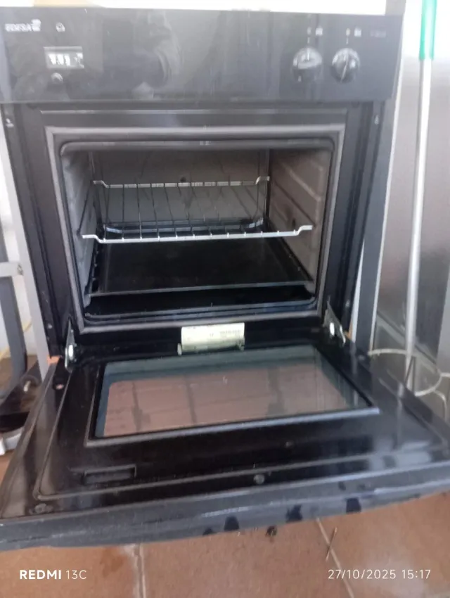 Horno eléctrico Teka en color negro. - Puerta con cristal. - Bandeja y rejilla incluidas. - Panel de control con mandos.