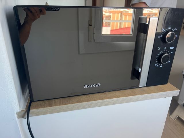 Detalles del productoMicroondas Brand color negro para encimeras de 26l, puerta de espejo, manillar de acero inoxidable, plato giratorio y 1450W.