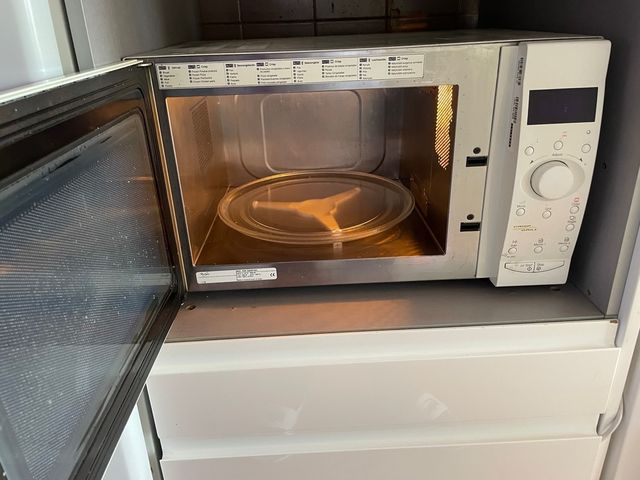 Detalles del productoHorno microondas de la marca Whirlpool, con puerta abatible y panel de control.