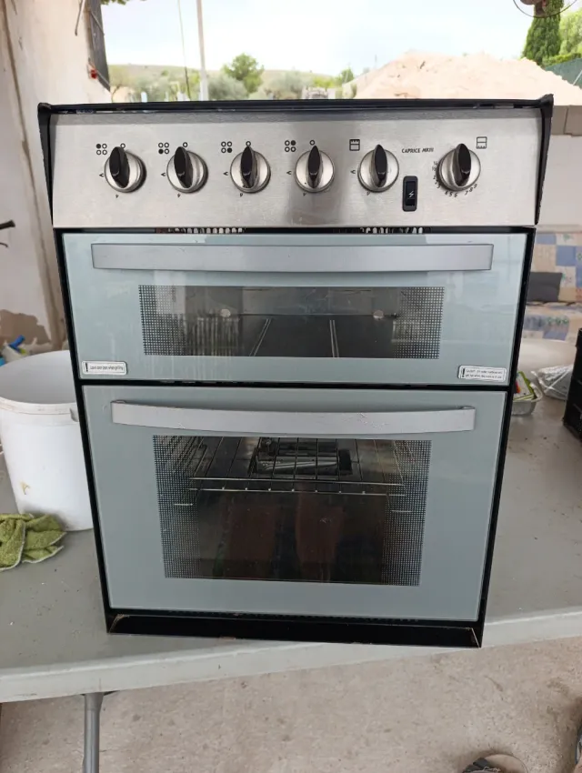 Horno de gas con doble puerta de cristal, ideal para autocaravanas o furgonetas camper. - Acabado en acero inoxidable. - Mandos frontales. - Puertas con cristal templado.