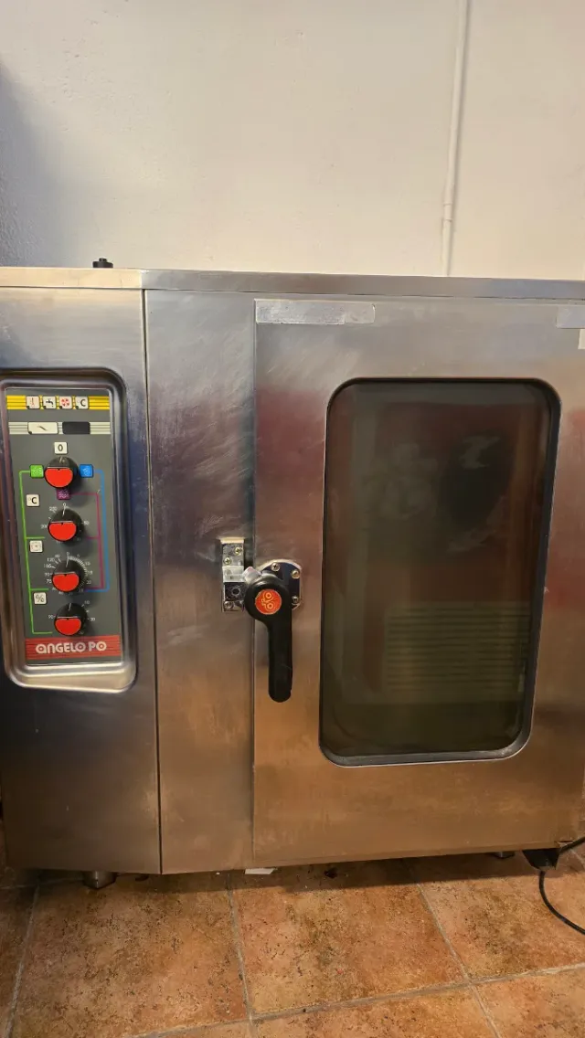 Detalles del productoHorno profesional de la marca Angelo PO, ideal para negocios de hostelería.