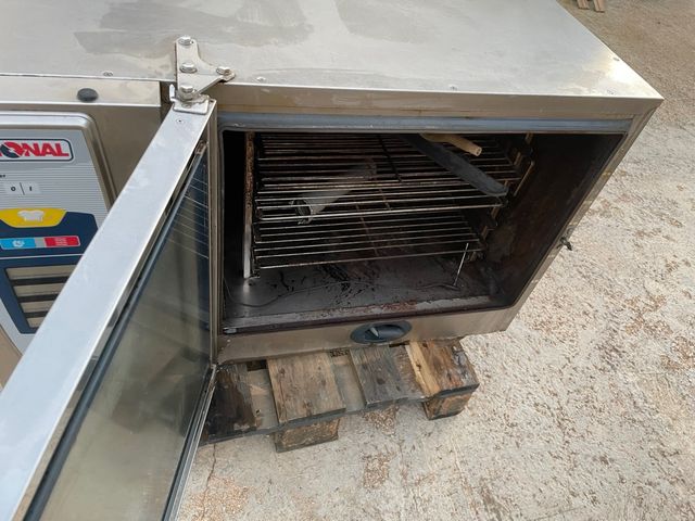 Horno profesional Rational. - Acero inoxidable. - Puerta abatible. - Bandejas interiores.