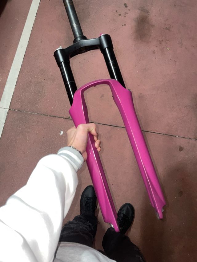 Horquilla de bicicleta en color morado precio negociable le falta un retén - Diseño llamativo y moderno. - Fabricada con materiales resistentes.