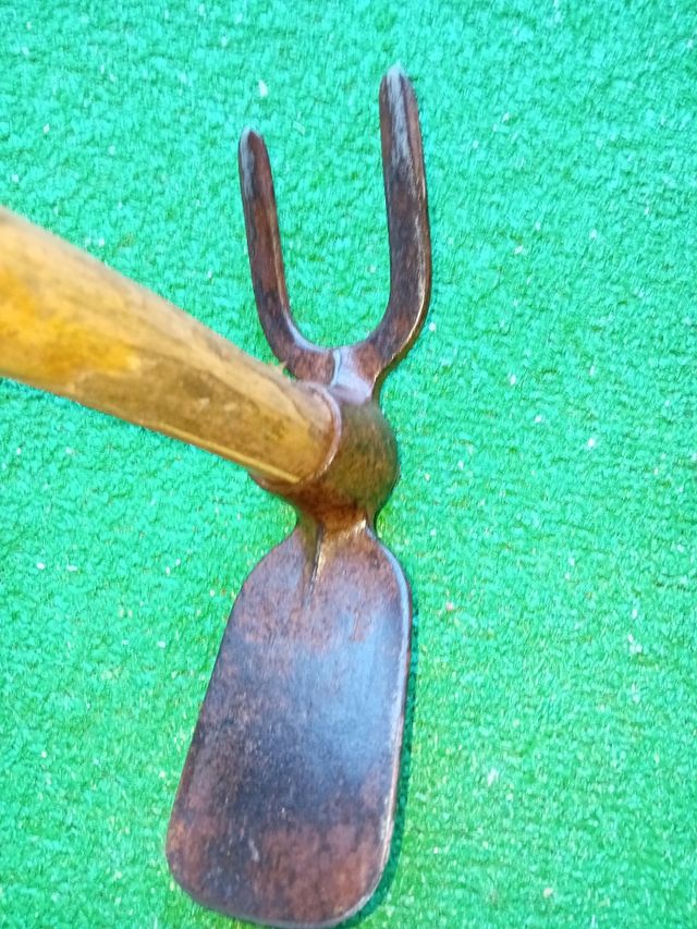 Detalles del productoHorquilla/azada restaurada. Limpia de óxido y con una mano de barniz incoloro especial para metales. Tiene el sello del fabricante. La hoja está afilada, ideal para decoración ó uso. Más artículos interesantes de manualidades de madera y herramientas agrícolas en mi perfil. ENVÍO RÁPIDO.