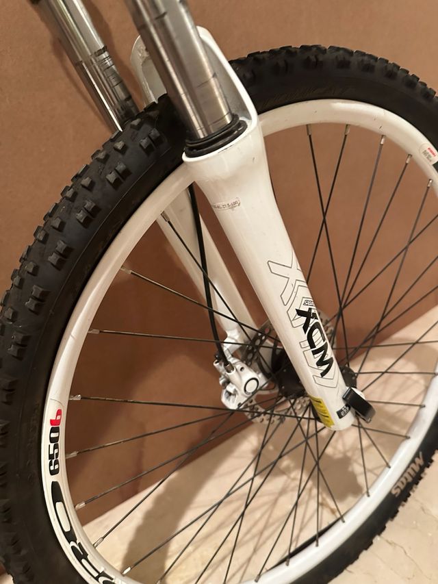 Detalles del productoHorquilla de bicicleta de montaña de aluminio 6061, en buen estado. Ideal para actualizar tu bici. precio negociable.