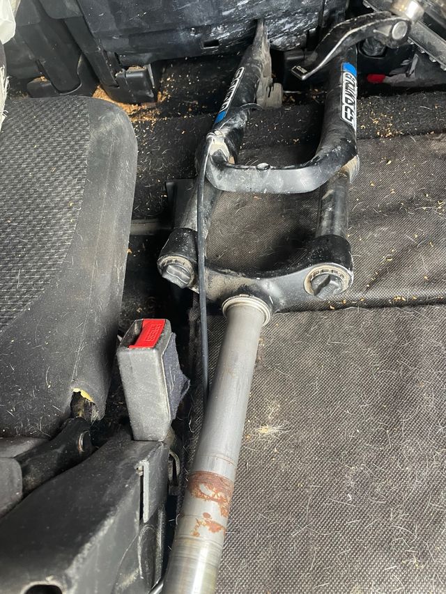 Detalles del productoHorquilla delantera para bicicleta de montaña con sistema de freno de disco.