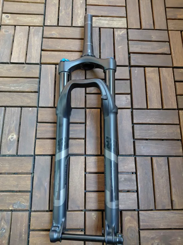Horquilla de suspensión delantera para bicicleta. - Modelo: Fox 32 Rhythm. - Diámetro de rueda: 29 pulgadas. - Color: Negro mate con detalles grises.