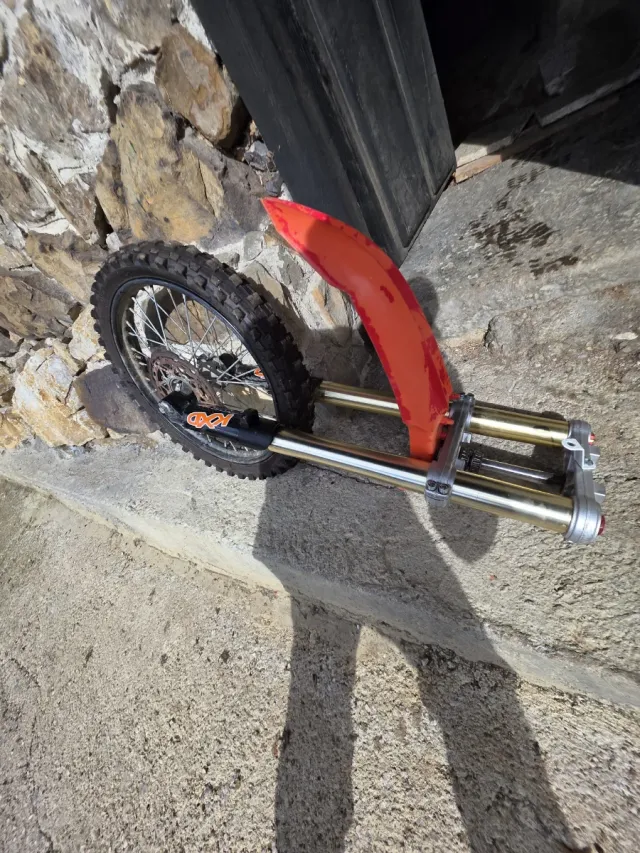 Horquilla delantera para pit bike de 125cc. Incluye la rueda delantera y el guardabarros - Color naranja. - Incluye tijas y barras. Precio negociable