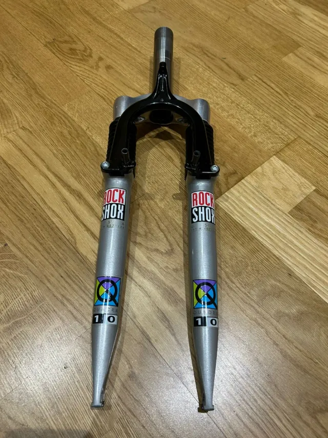 Horquilla de bicicleta Rock Shox Quadra 10, tubo de dirección 1 1/4 y 14cm largo roscado, sirve para vbrake o cantilever, rueda 26''. Nueva, nunca usada.
