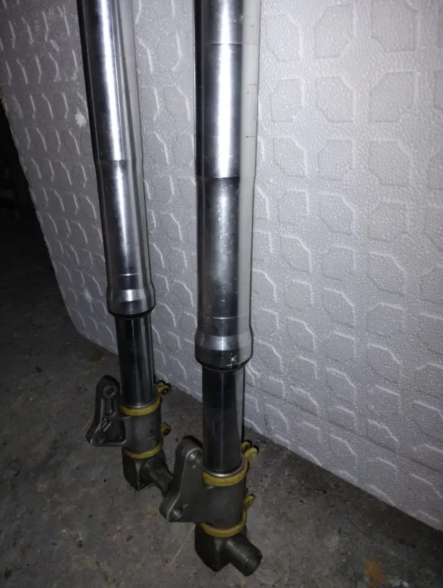 Juego de horquillas delanteras para Ducati Monster. Piezas de metal plateado. - Incluye ambas horquillas. - Listas para instalar.