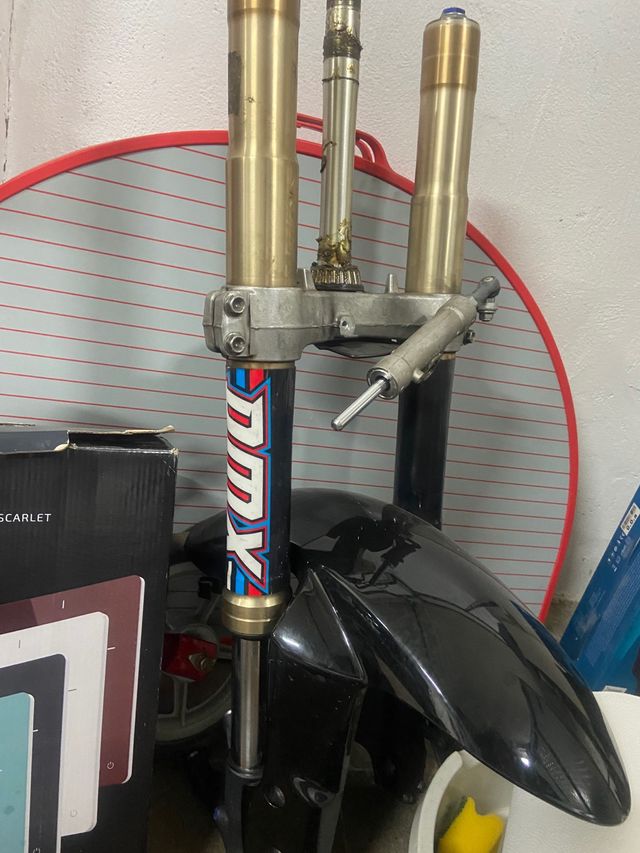 Horquillas delanteras para Suzuki GSX-R. - Preparadas por DMX. - Color dorado y negro.