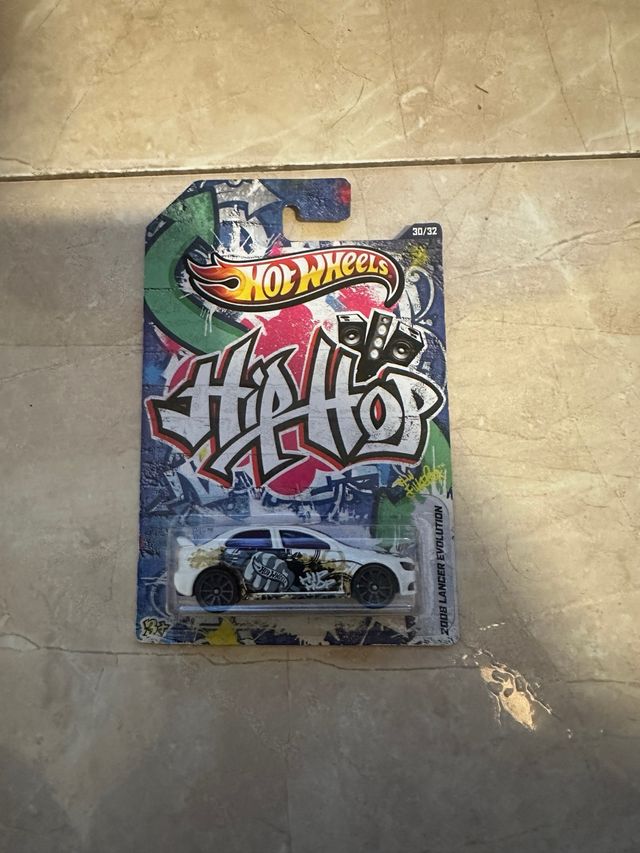 Coche de juguete Hot Wheels, modelo 2008 Lancer Evolution con diseño Hiphop. - Escala 1:64. - Parte de la serie Hiphop. - Diseño gráfico urbano.