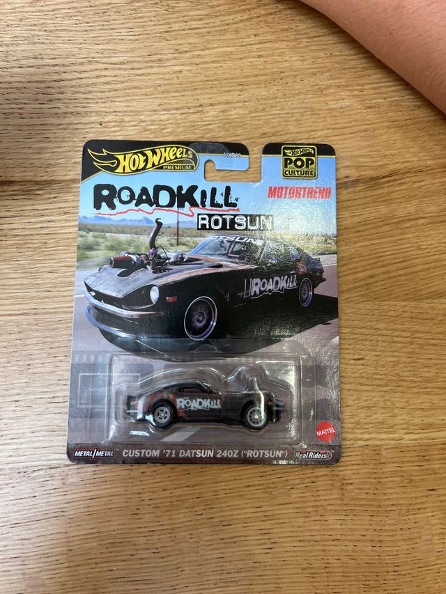 Detalles del productoEspectacular Hot Wheels Datsun 240Z Roadkill, ¡listo para tu colección! Es un modelo a escala del famoso coche personalizado.