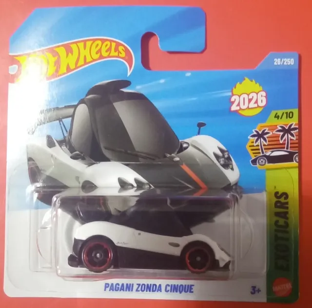 Coche de colección Hot Wheels. - Modelo: Pagani Zonda Cinque. - Año de colección: 2026. - Serie: Exotics.