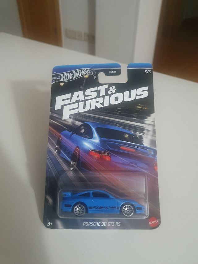 Coche de juguete Hot Wheels de la colección Fast & Furious. - Modelo: Porsche 911 GT3 RS. - Color: Azul. - Escala 1:64.