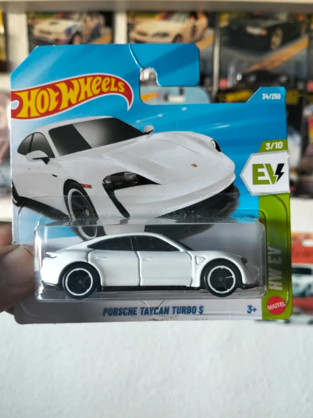Coche de juguete Hot Wheels del Porsche Taycan Turbo S. - Modelo EV. - Color blanco. - Escala 1:64.