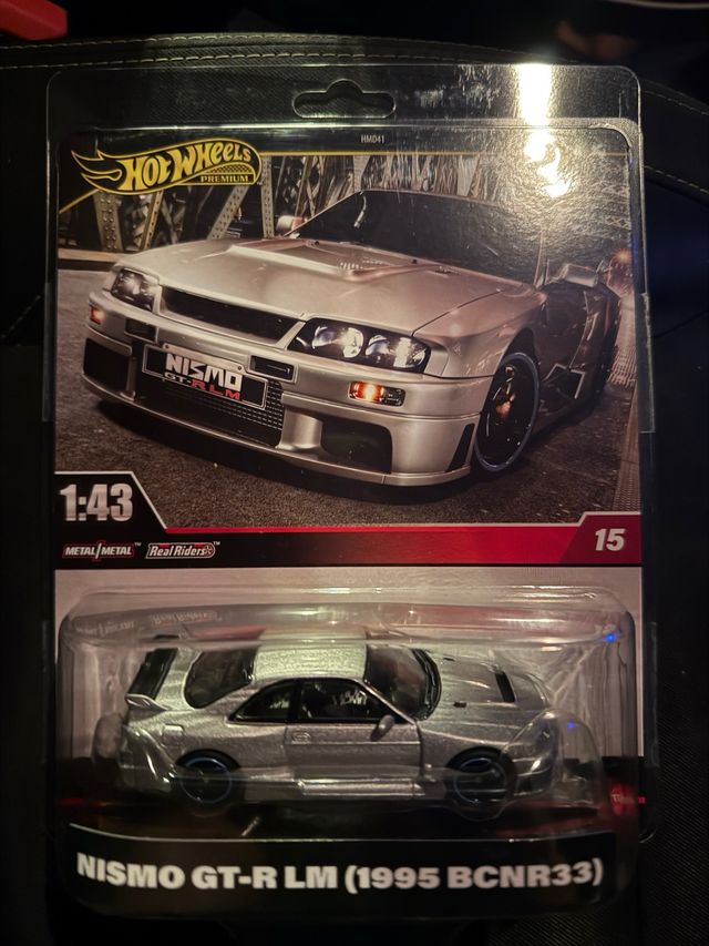 Coche a escala Hot Wheels Premium. - Modelo: NISMO GT-R LM (1995 BCNR33). - Escala 1:43. - Metal Metal con Real Riders.