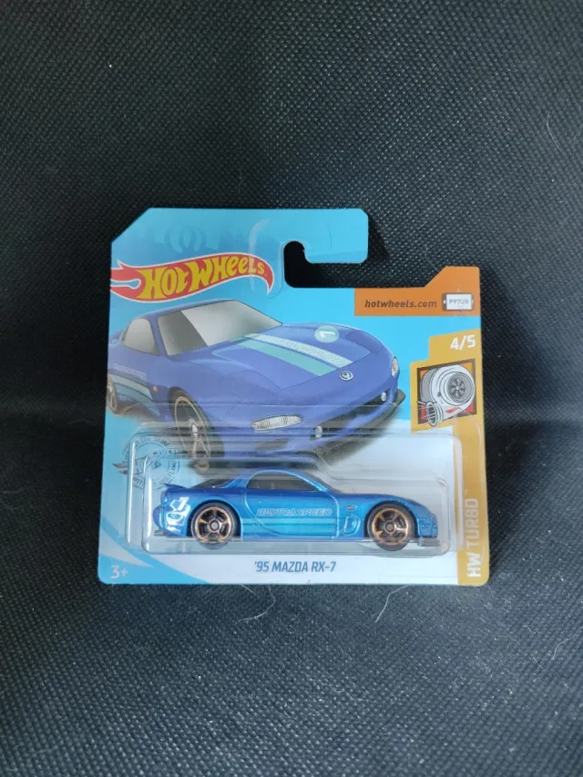 Miniatura del coche Hotwheels '95 Mazda RX-7 en color azul. - Escala 1:64. - Serie HW Turbo.
