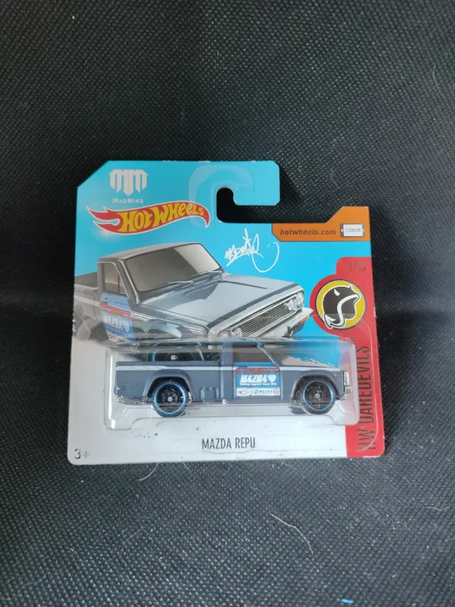 Miniatura del Mazda Repu de Hotwheels, parte de la colección Mad Mike. - Diseño detallado del vehículo. - Presentado en su embalaje original.