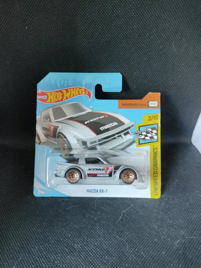 Coche de colección Hotwheels Mazda RX-7. - Modelo: Mazda RX-7. - Diseño: KONI. - Serie: HW Speed Graphics. - Número de colección: 2/10.