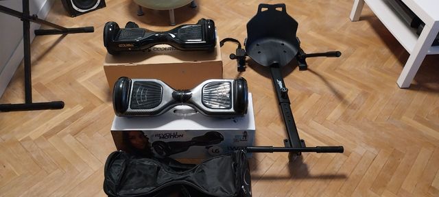 Detalles del productoSe venden 2 Hoverboard usados 3 veces contadas.funcionan correctamente,se entregan con su embalaje,manuales,cargadores,fundas de transporte y protectores de silicona.De regalo se entrega silla kart adaptable tanto para niño como adulto,todo practicamete nuevo.
