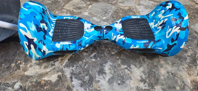 Hoverboard con un diseño de camuflaje en tonos azules. - Diseño llamativo en camuflaje azul. - Plataformas antideslizantes para mayor agarre.