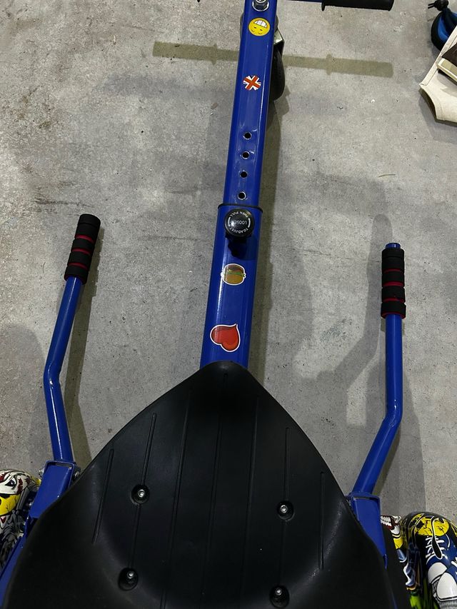Vendo hoverboard para niños, en buen estado. - Estructura azul resistente. - Asiento de plástico cómodo. - Manubrios con empuñaduras de goma.