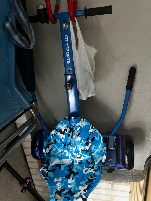 Hoverboard CITYSPORTS con asiento desmontable. Diseño moderno con estampado de camuflaje azul. Usado 3 veces