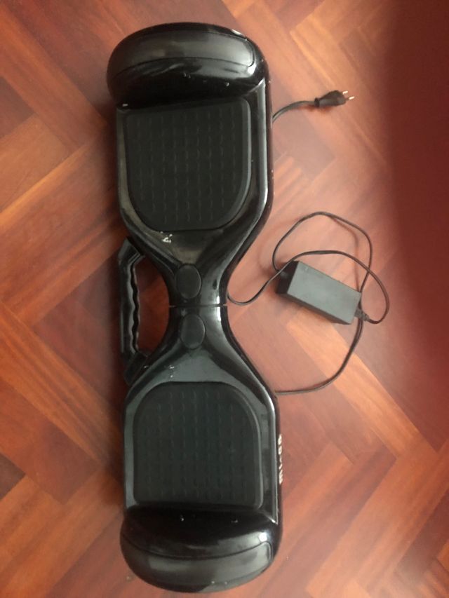 Detalles del productoHoverboard negro con asiento incluido y su cargador.