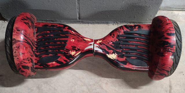 Detalles del productoSe vende hoverboard en buen estado. Tiene un diseño llamativo con efecto de llamas rojas y negras.