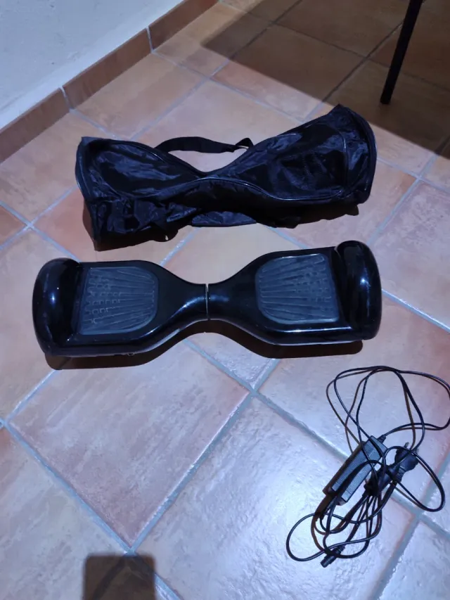 Detalles del productoHoverboard de color negro, ideal para desplazarse de forma divertida. Incluye bolsa de transporte y cargador.