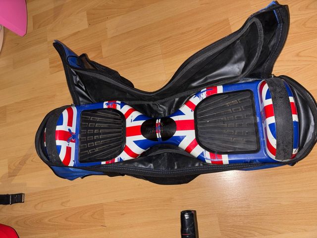 Detalles del productoVendo mi hoverboard, en buen estado. Tiene un diseño chulo con la bandera del Reino Unido.