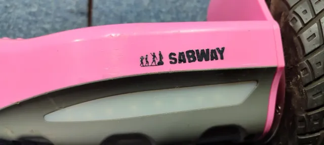 Hoverboard de color rosa con el logo de SABWAY,incluye funda - Diseño moderno. - Ruedas formato grande - Luces LED integradas. Conexion bluethoo La batería dura poco