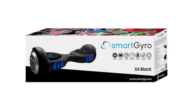 Detalles del productoHoverboard SmartGyro X4 en color negro. Diseño moderno y luces LED azules.