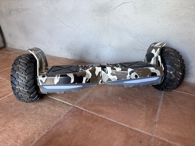 Detalles del productoHoverboard con un diseño de camuflaje todoterreno. Sus ruedas grandes están preparadas para diferentes superficies.
