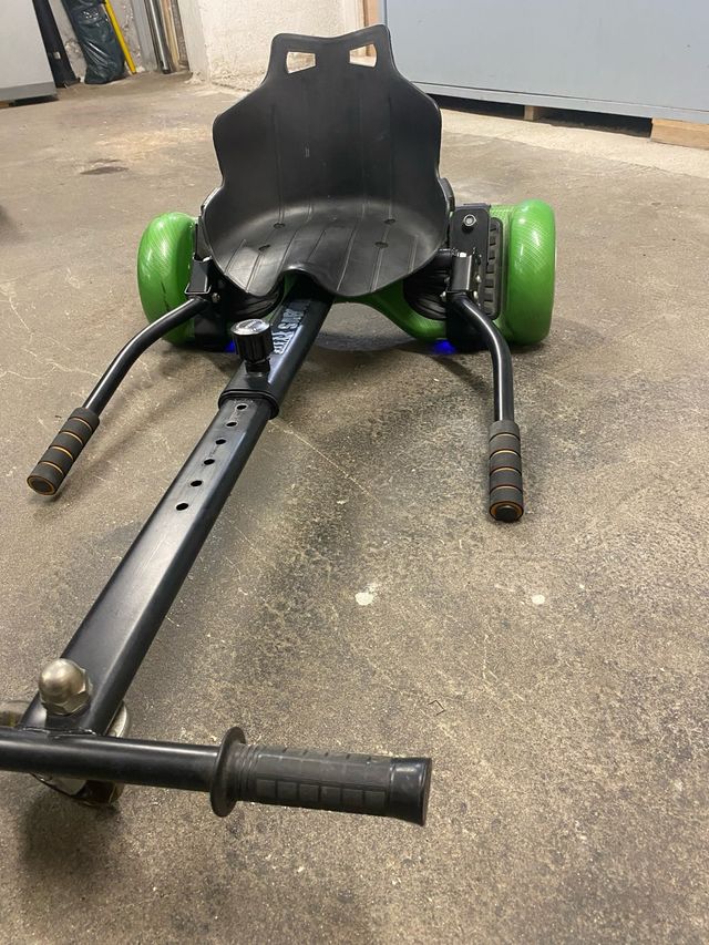 Hoverboard de color verde, listo para usar. - Incluye silla(viene incluida) pero se puede quitar y poner con velcro - Incluye cargador.