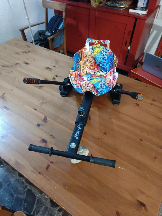 Detalles del productoAsiento adaptable para hoverboard, con un diseño de grafiti muy llamativo.