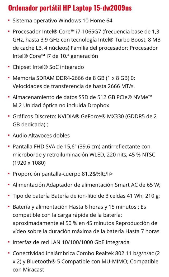 HP Laptop 15-dw2009ns i7-1065G7 8GB RAM 512GB SSD