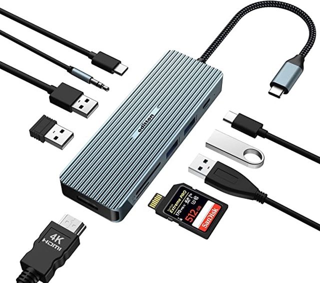 Detalles del productoHub USB 3.0, oditton Docking Station 10 en 1 Adaptador Hub USB C con 4K HDMI, 2*USB3.0 Tipo-A, Puerto de Transferencia de Datos USB-C, 2*USB 2.0 Tipo-A, SD/TF, USB C PD, 3.5mm Stereo Combo Jack