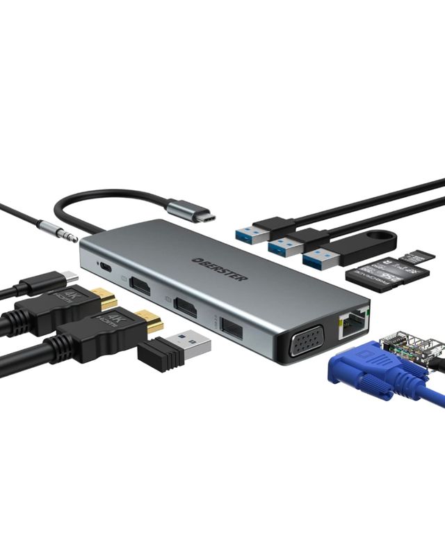 Vendo una estación de acoplamiento USB-C 12 en 1 de la marca OBERSER. Está en excelentes condiciones y es de color gris plata.