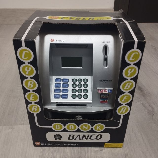 Detalles del productoHucha en forma de cajero automatico funcional ideal para iniciarse en el ahorro:
