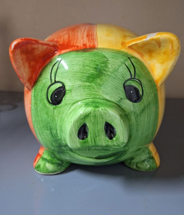 Detalles del productoPreciosa hucha de cerámica, ideal para decorar o guardar tus ahorros. Es de cerámica y tiene un diseño multicolor con tonos verdes, amarillos y naranjas.