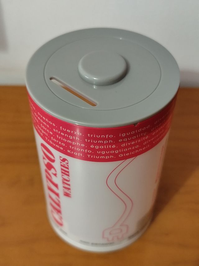 Detalles del productoPreciosa hucha con forma de lata de Calypso Watches. Ideal para guardar monedas.