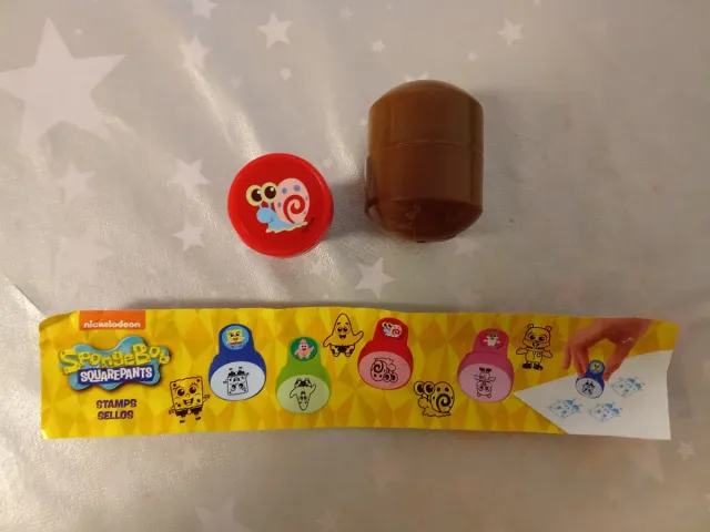 Detalles del productoLote de huevos sorpresa de Bob Esponja de Mercadona. Incluye un huevo sorpresa con un sello.