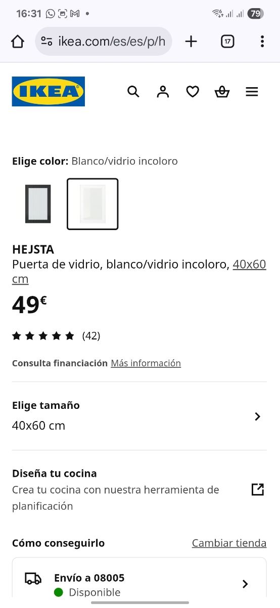 Detalles del productoPuerta de vidrio HEJSTA de Ikea en color blanco/vidrio incoloro.