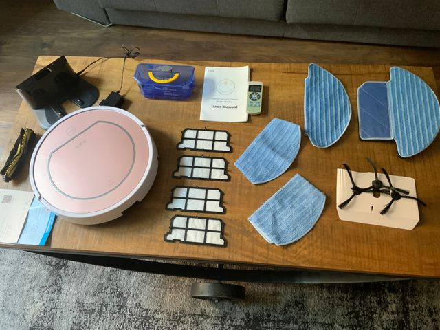 Manual de instrucciones incluido y pack de recambios sin estrenar, mopas friega suelos, filtros y escobas, tal cual se ve en las fotos.