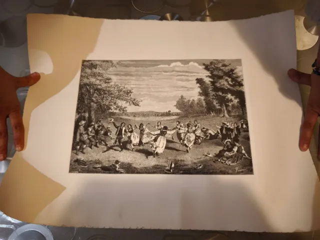Detalles del productoGrabado antiguo de una escena campestre del siglo XIX.