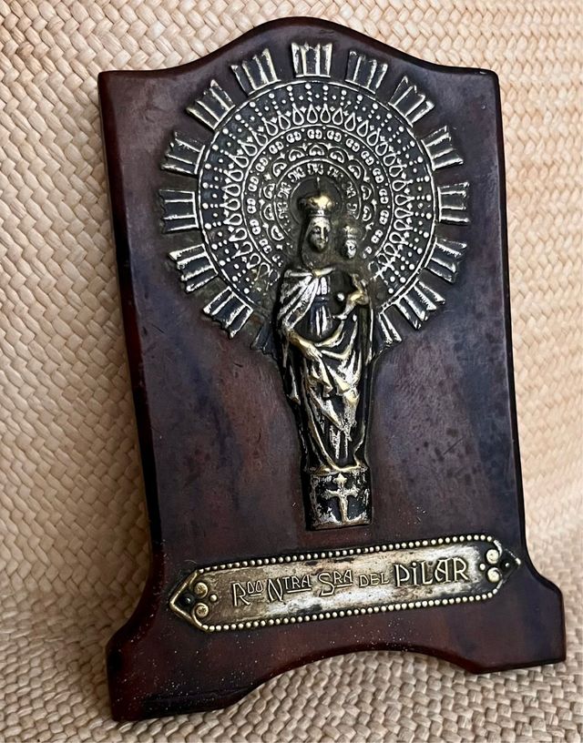 Detalles del productoPlaca religiosa de la Nuestra Señora del Pilar. Décadas 60-70.